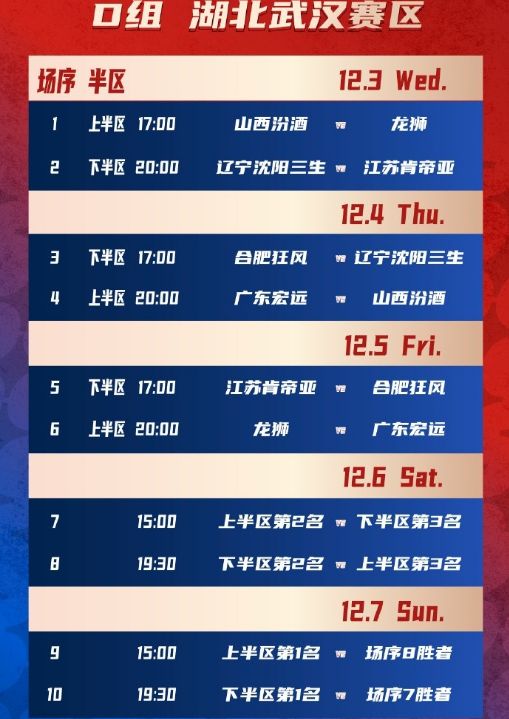 CBA官宣俱乐部杯小组赛赛程:12月3日-8日 揭幕日卫冕冠军登场